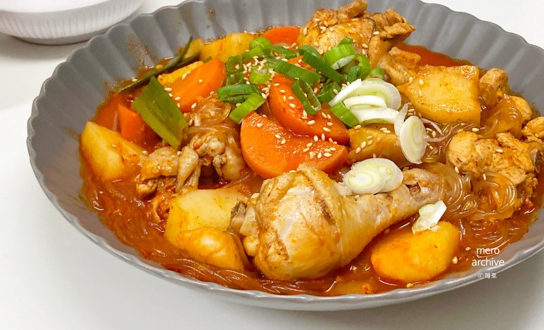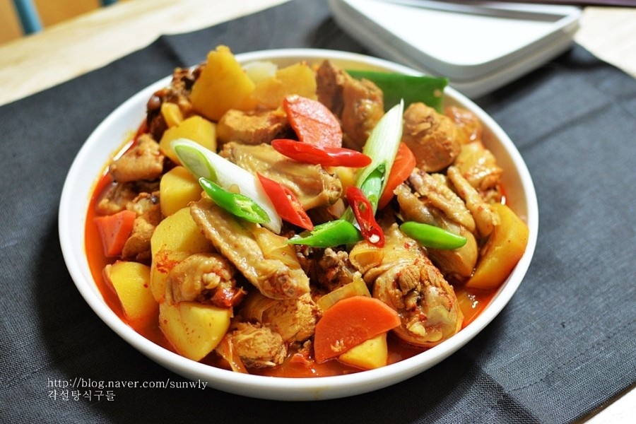 마늘이 가득 들어간 먹음직스러운 닭볶음탕